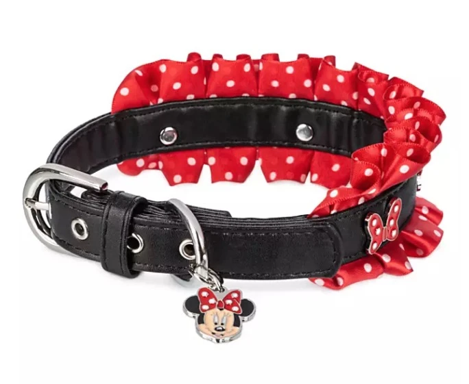 Dress up your pampered pooch in style with this Minnie Mouse Dog Collar. The simulated leather design is available in a choice of sizes and features enamel cloisonné polka dot bows and is edged in ruffled polka dots so they will be the most fashionable four-legged friend on the block.