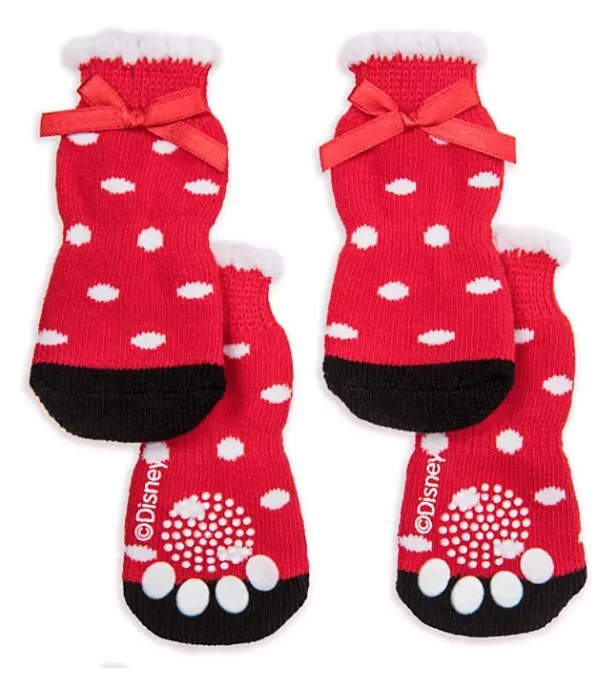 Your four-legged friend will have cozy toes wherever you go on your walks with these Minnie Mouse socks. One set of four socks features contrast toe, satin bow accent, and tread dots on the bottom to ensure a non-slip step.