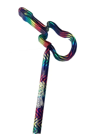 shaft features a very colorful rainbow design, and It is topped off with the