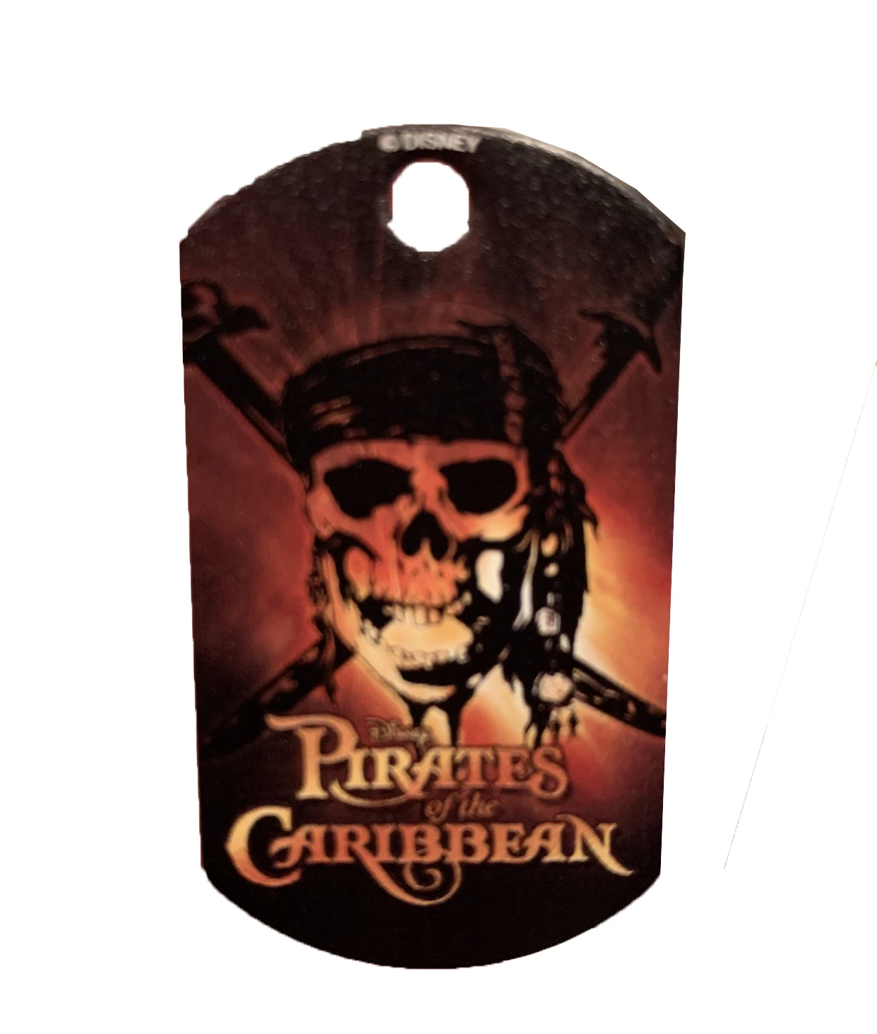 even a souvenir for yourself with this fun ID Tag. Features Pirates of the Caribbean, and your personal engraving on the back.